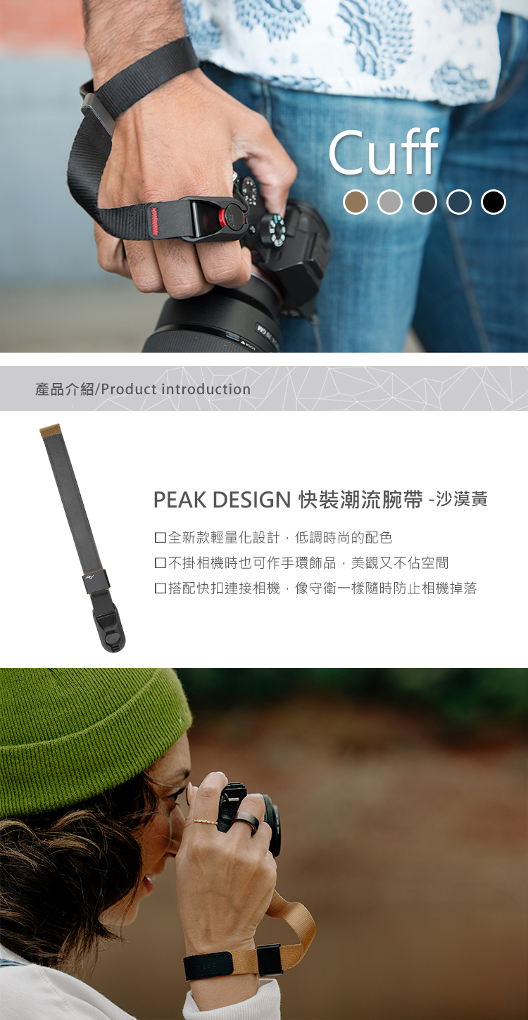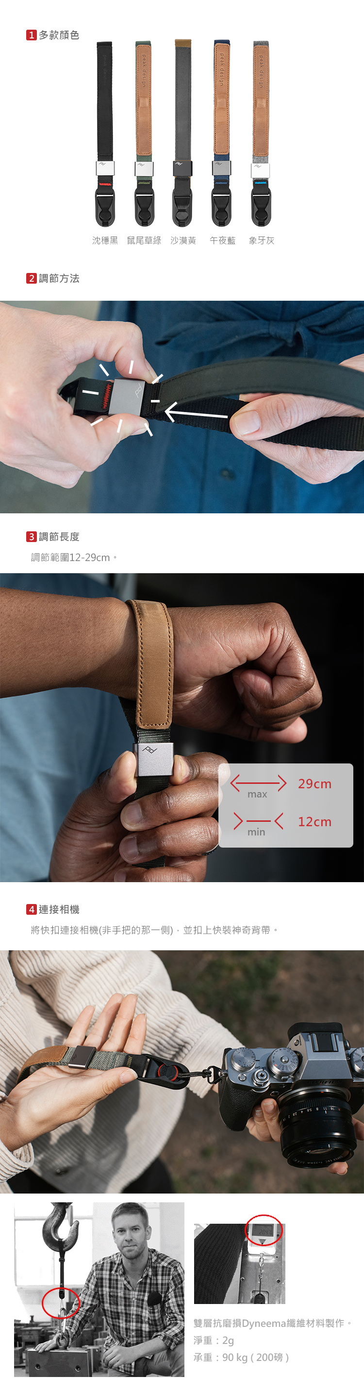 讓手腕帶幫你抓著相機隨時待命相機的安全。全新款輕量化設計,低調時尚的配色,不掛相機時也可作手環飾品。