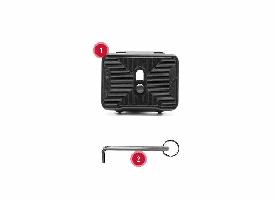 同時相容ARCA、Manfrotto RC2兩大快拆系統,不需要工具拆裝就可相容兩種快拆系統,更薄與更服貼機身,有兩個孔可與安全扣連接,也可以搭配舊款快夾系統使用。