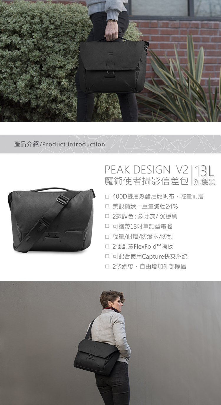 經典款信差包,適合通勤、騎車,可以說是最萬用的包款。適中的空間容量,立體剪裁上蓋讓包體更為圓滑、時尚,延伸空間放置大量物品也不會變形。獨立的空間放置筆電、平板、文件、眼鏡、3C周邊用品等。使用更舒適、更耐用的背帶材質,綁帶可外掛攜帶腳架或其他周邊。