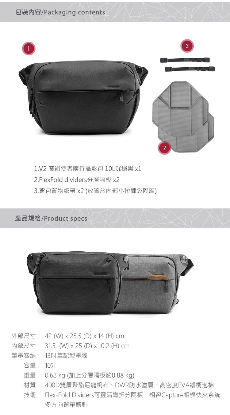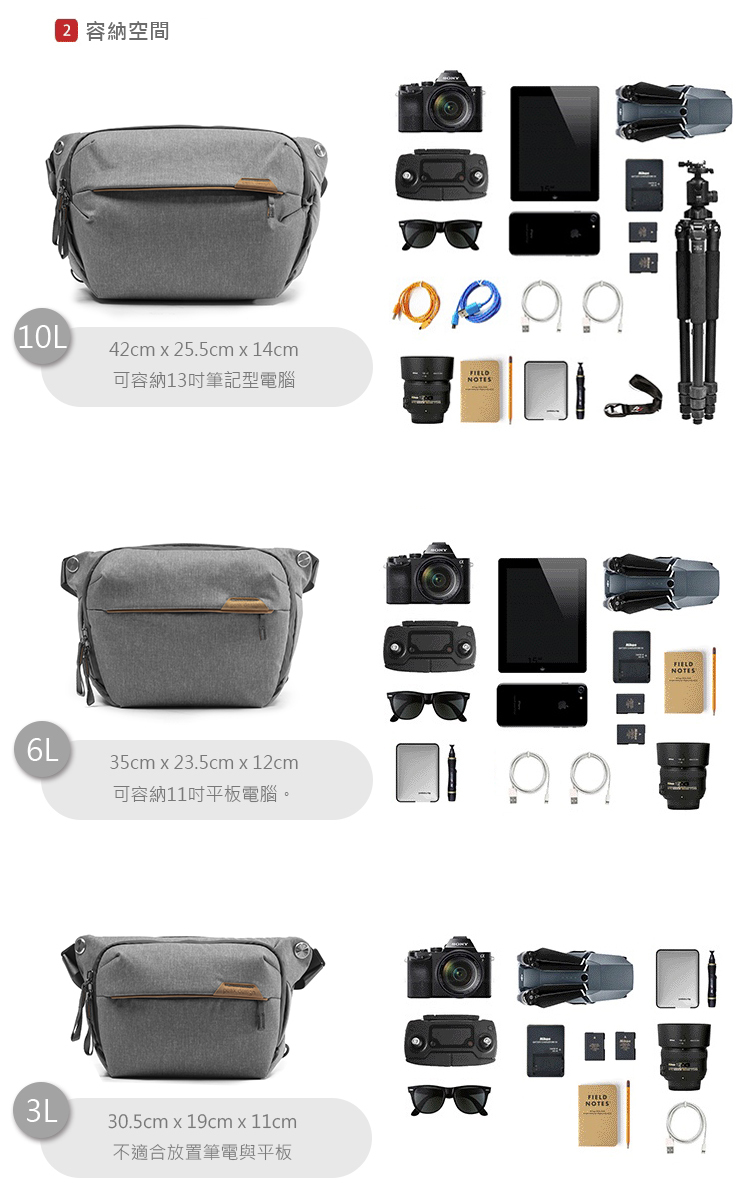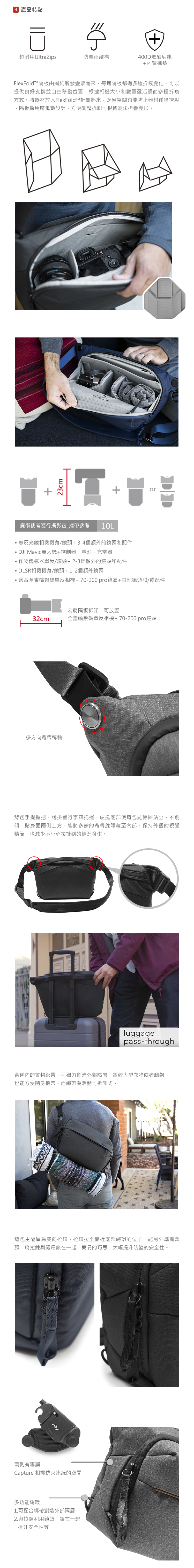 10L都會通勤.隨著攝影器材的小型輕量化,出門攜帶的東西也更為簡單,簡約的隨行包是輕裝出門的最佳選擇。體剪裁無縫設計,圓滑、時尚。使用更舒適、更耐用的背帶材質,10L款擁有13”筆電隔層。