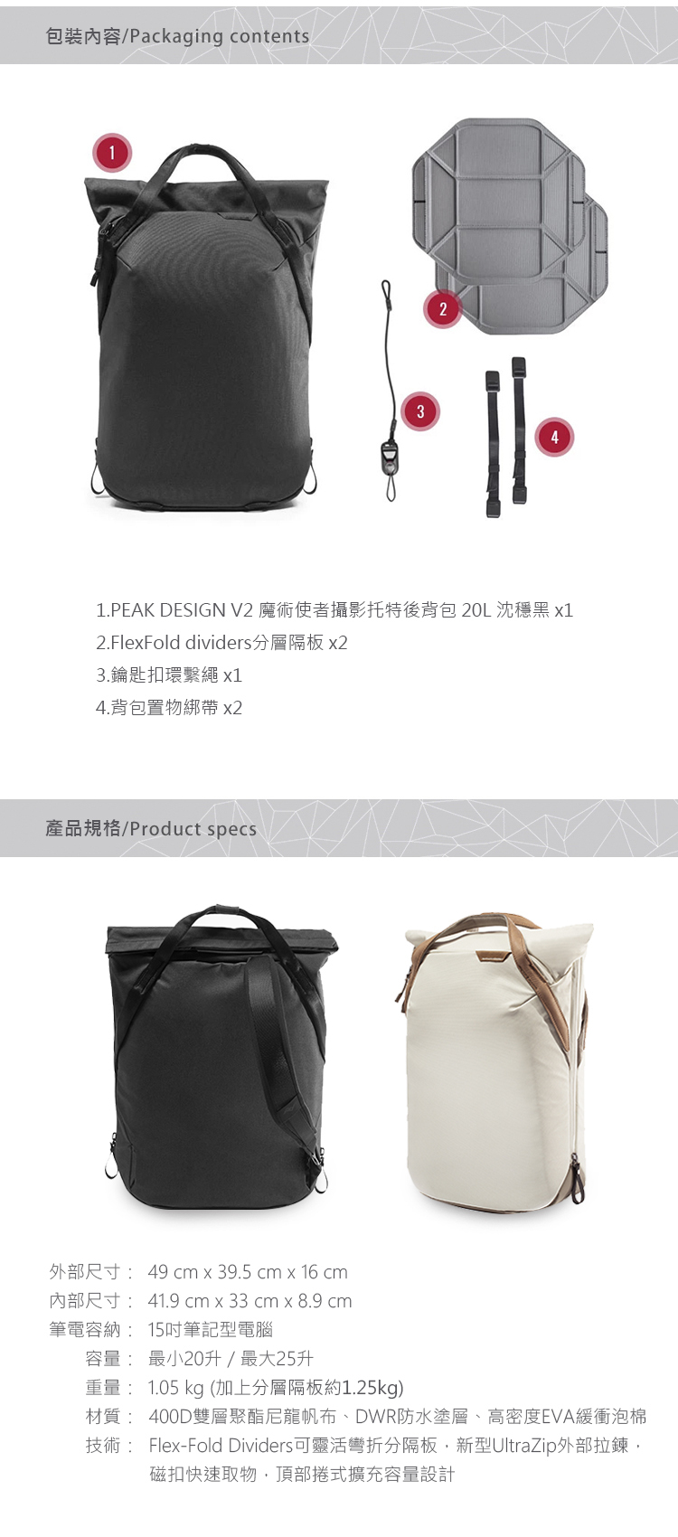 獨家設計包款,磁扣設計取物便利,手提後背兩用,附可拆卸式的後背帶,裝載大量物品可後背更省力。外觀時尚簡約,商務休閒都適合。主袋多功能可變隔層,可自行調整分隔空間。沈穩黑、文藝白兩色可選,適合多種穿搭選擇。