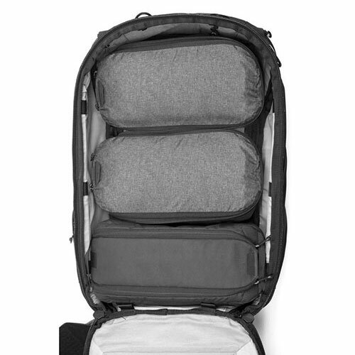 多功能、耐用、漂亮的隨身旅行背包,最大可擴展為45L重裝旅行或折收成35L日常背包並且符合國際航空隨身行李要求,頂部,側面,前面和後面開口都配備防風雨拉鍊。是一款多用途設計、著重細節、全方位實用的背包,與旅行者系列收納產品完美相容。每趟旅行可搭配各種不同收納模組,可以是相機包、行李包,陪你走遍世界各地。