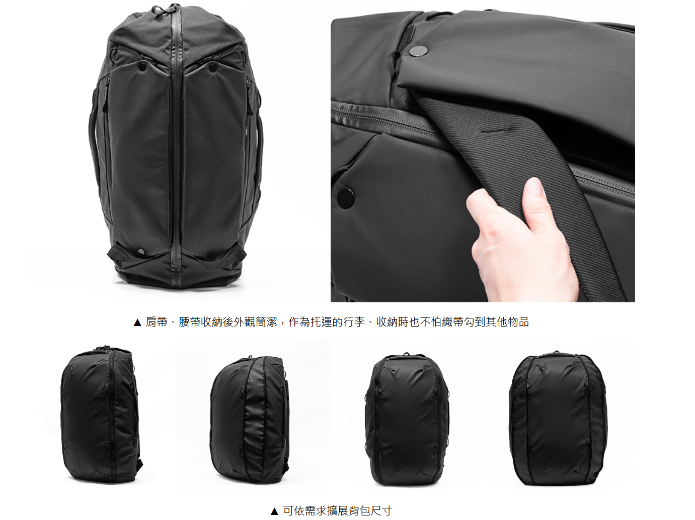好背、好提、好托運!可攜帶大量行李,擁有寬又厚的可收納背帶及腰帶十分服貼,不損失背負的舒適度。外觀簡潔托運方便,堅固耐用,可以說是中長途背包旅行的極佳選擇!是一款多用途設計、著重細節、全方位實用的背包,與旅行者系列收納產品完美相容。每趟旅行可搭配各種不同收納模組,可以是相機包、行李包,陪你走遍世界各地。