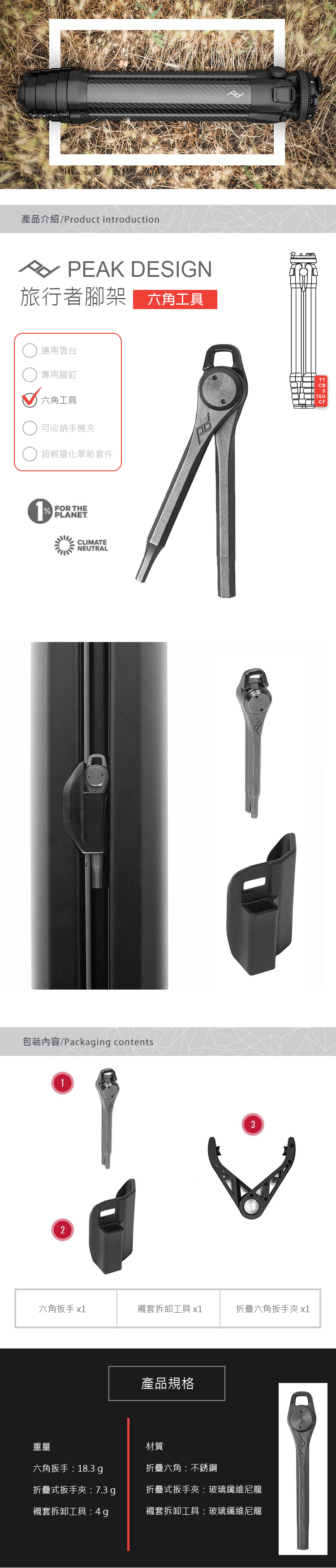 旅行者腳架專用六角工具,方便隨身攜帶,隨時調整你的腳架讓你旅途更便利。